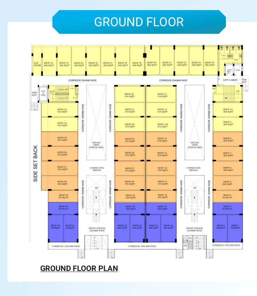 | BLUE ZONE : 1ST & 2ND ROW | UPPER GROUND FLOOR | ₹ 21,000/SQ.FT. | On Request |